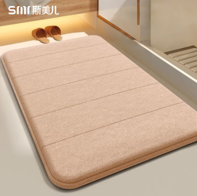 斯美儿家用浴室地垫卫浴吸水地垫珊瑚绒防滑垫卫生间地垫简约冬季可定制 条纹驼色 40x60cm