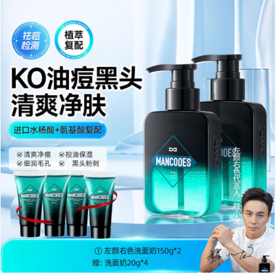 左颜右色男士洗面奶 郝邵文氨基酸控油痘肌去清洁黑头清爽深层毛孔洁面乳 【量贩特惠装】洗面奶2瓶