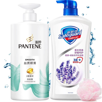 潘婷丝质顺滑氨基酸洗发水沐浴露套装组合装柔亮顺滑干枯毛躁洗发露 丝质顺滑洗500g+薰衣草沐650g