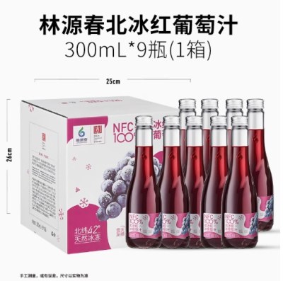林源春冰红葡萄汁300ml*9瓶/箱 NFC100%生榨纯果汁【顺丰包邮】