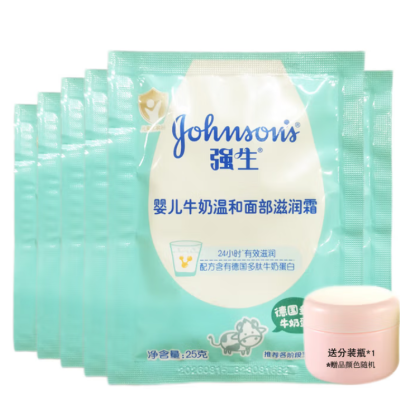 强生婴儿牛奶温和面部滋润霜24小时有效滋润面霜含有多肽牛奶蛋白 袋装25g×6袋+分装瓶