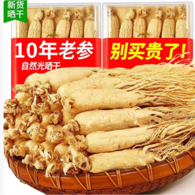 馨草纲目长白山干人参白参10年老参整枝精选野山人参东北特产泡酒煲汤园参 精选长白山野生人参 8年[6支装]小干参