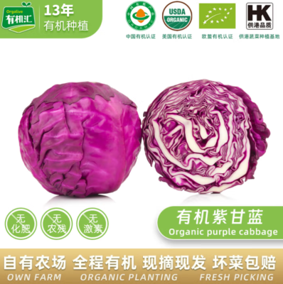 有机汇有机紫甘蓝 紫包菜卷心菜 沙拉轻食榨汁有机蔬菜 新鲜无农残 500g