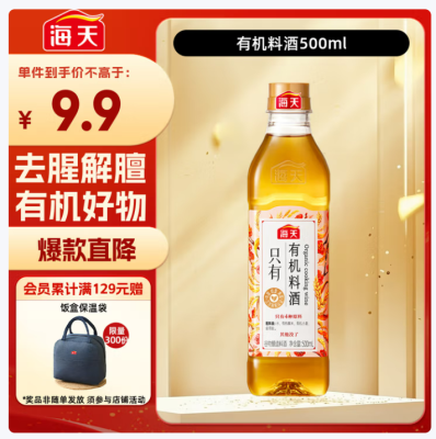 海天 料酒500ml【0添加 有机系列】去腥解膻 调味品