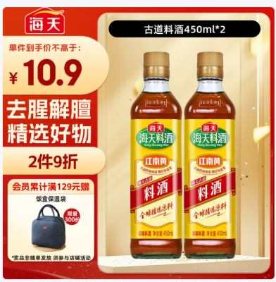 海天 料酒 450ml*2 古道系列 调料 双支家庭装 去腥解膻 蒸炒炖煮