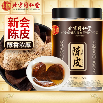 北京同仁堂陈皮 正宗广东新会老陈皮自然晾晒泡茶泡水喝滋补橘皮105g 105g*1罐