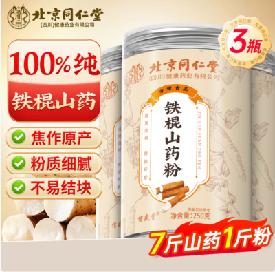 朕皇 北京同仁堂铁棍山药粉正宗纯怀淮山药代餐营养粉0添加胃早餐食品 250g*3罐