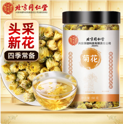 内廷上用北京同仁堂 菊花 菊花茶胎菊白特正品级贡菊花杭清凉肝茶叶火泡水 精选菊花【50g*1瓶】
