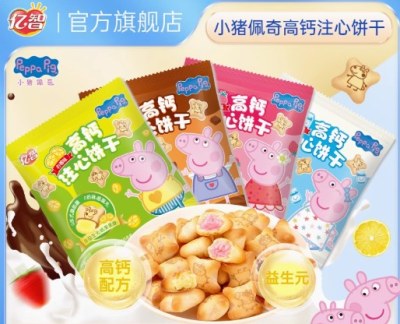 亿智小猪佩奇高钙注心饼干草莓味巧克力味夹心零食小吃散装批发