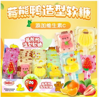 金稻谷21克莓熊鸭软糖幼儿园奖励学生棒棒糖儿童零食盒装糖果批发