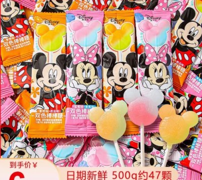 迪士尼双色棒棒糖网红爆款儿童糖果结婚喜糖散装批发休闲招待零食