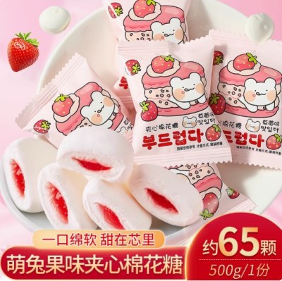好亲家萌兔草莓桔子水果味夹心棉花糖软糖散装儿童零食婚庆喜糖果