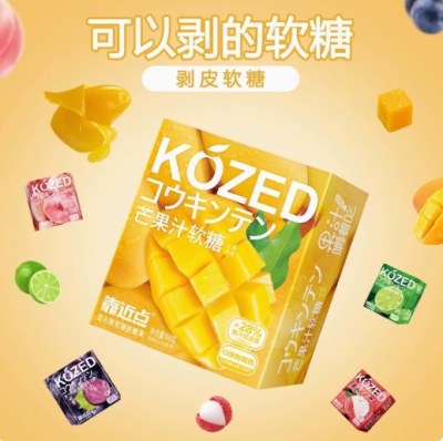 金津剥皮软糖0脂芒果扒皮水果汁葡萄青柠QQ爆浆橡皮糖多口味零食