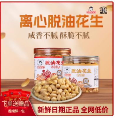 花生姑娘 脱油花生米308g*2罐装 五香藤椒香辣每口优脱油花生零食