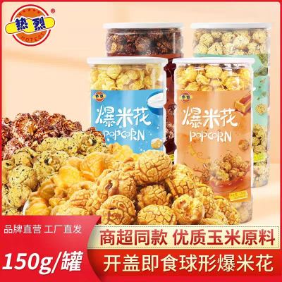 热烈即食爆米花奶甜味油焦味糖黑巧克力味岩烧海苔味150克罐装