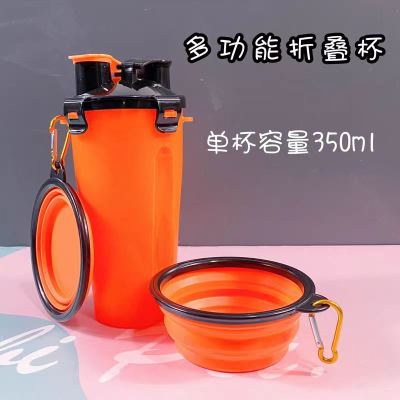 宠物狗狗外出水粮杯便携折叠水杯猫咪旅行水壶户外随行两用杯