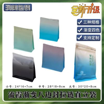 食品包装八边封口袋茶叶包装袋铝箔3D立体咖啡包装自封拉链袋定制