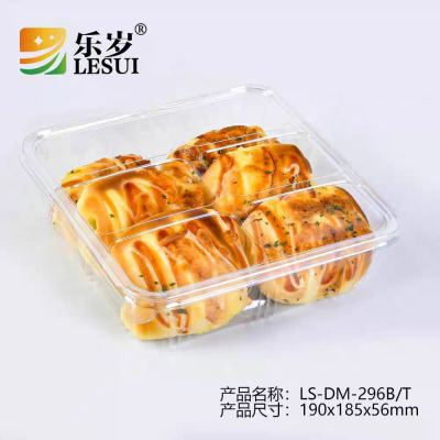 乐岁食品包装盒塑料PET透明糕点水果多用打包盒正方形可贴标新款