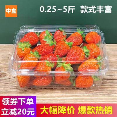 一斤装草莓盒水果包装盒 一次性水果盒子透明塑料500克带盖打包盒