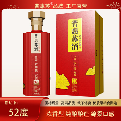 浓香型纯粮食白酒500ml/瓶52度送长辈酒礼盒装固态发酵纯粮食酿造