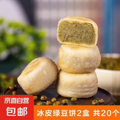 0蔗糖冰皮绿豆饼红豆饼绿豆糕零食网红早餐小吃糕点 冰皮绿豆饼2盒20个660g