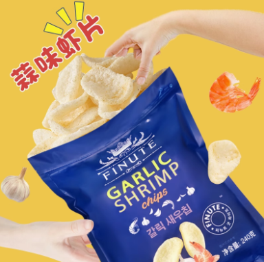 趣莱福FINUTE蒜味虾片240g韩国进口原装超大礼包膨化网红山零食拇