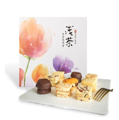 浅茶家曲奇饼干网红零食礼盒手工蔓越莓糕点下午茶甜品休闲零食大礼包 五口味拼装23枚 195g