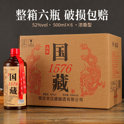 国藏1576整箱六瓶52度浓香型白酒固态纯粮酒礼盒装500ml*6瓶高粱