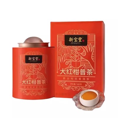 新宝堂大红柑普茶红罐500克 新会柑普茶大红柑熟茶礼盒装正品保障