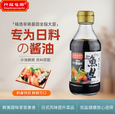 行政总厨日式海鲜刺身鱼生寿司专用酱油 低盐提鲜健康天然酿造 日本风味 鱼生寿司酱油200ml*1