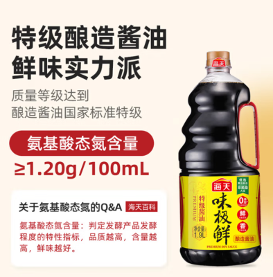 海天味极鲜酱油 特级生抽 0添加防腐 自然鲜 炒菜调料凉拌红烧调味品 【镇店之宝】味极鲜1.9L*2瓶