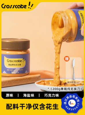 crosscate海盐花生酱颗粒0低无糖精卡芝麻不添加料面包脂涂抹拌面