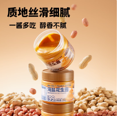 新品【三只松鼠_花生酱200g】纯花生酱海盐面包酱麻酱0添加健身