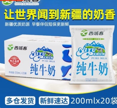 西域春新疆纯牛奶200ml*20袋整箱利乐枕牛奶学生早餐纯奶入口牧场