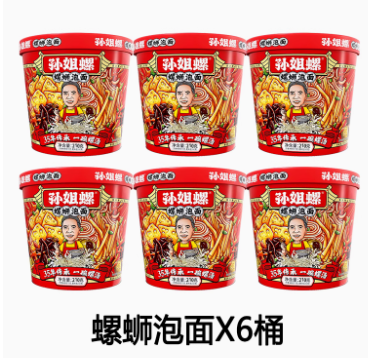 【螺蛳泡面】210g*6桶孙姐螺柳州灯泡厂螺蛳粉速食冲泡宵夜即食