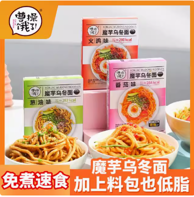 曹操饿了魔芋乌冬面+鲜乌冬 非油炸免煮带酱料包拌面