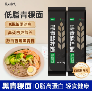 蓝天净土西藏0脂黑青稞挂面代餐非即食青稞面条360g/袋高蛋白主食