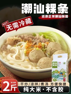 潮汕粿条广东汤河粉潮汕特产手工粿条粉牛肉丸粉粿干稞条粉条果条