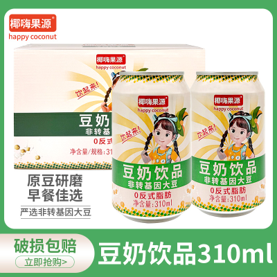 椰嗨果源原味豆奶310ml罐装营养儿童早餐奶植物蛋白港式即饮豆浆