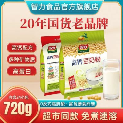 智力高钙豆奶粉720g高蛋白营养早餐奶速溶免煮冲泡食品冲饮小袋装