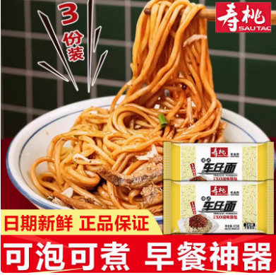 寿桃牌港式车仔面3份装-XO滋味酱味615g速食免煮捞拌泡非油炸方便