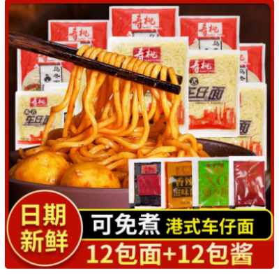 寿桃牌车仔面xo酱港式拌面日式乌冬面非油炸速食泡面方便面条整箱
