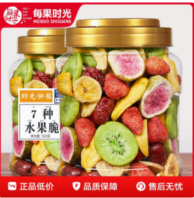 每果时光综合水果脆片500g罐装冻干水果干果蔬脆儿童孕妇休闲零食