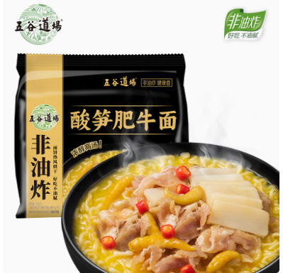 五谷道场非油炸方便面整箱酸笋肥牛面袋装懒人面食速食品夜宵泡面