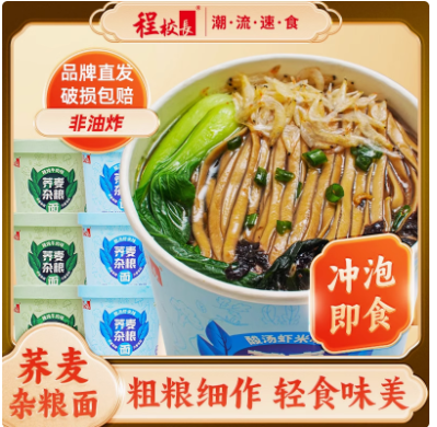 程校长荞麦杂粮面桶装非油炸方便面清真泡面整箱冲泡面条旗舰店