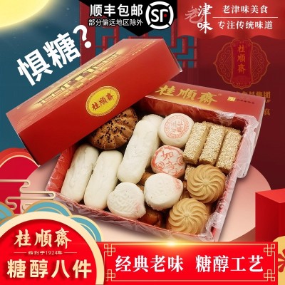 天津特产桂顺斋糖醇糕点心清真传统老式酥皮白皮无蔗糖京八件礼盒