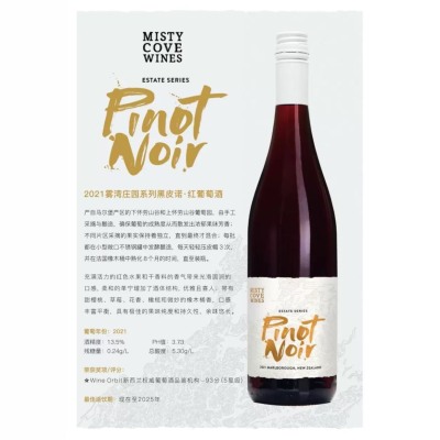 2021新西兰雾湾庄园系列黑皮诺红葡萄酒estate series pinot noir