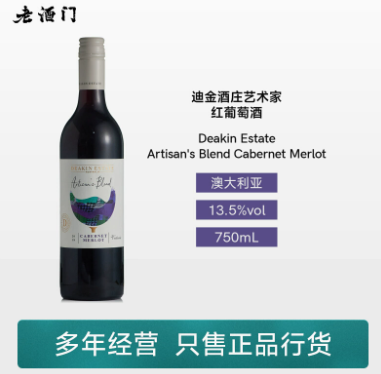 迪金酒庄艺术家红葡萄酒750ml赤霞珠梅洛澳洲Deakin Estate