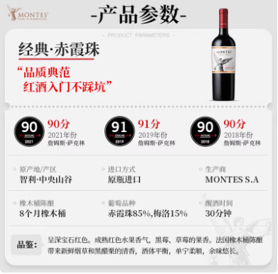 蒙特斯经典系列赤霞珠干红葡萄酒750ml智利原瓶进口红酒婚礼喜宴
