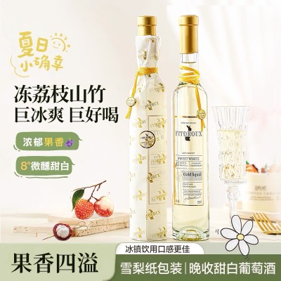 菲特瓦青提冰荔枝法国进口晚收甜白葡萄酒低度微醺礼盒装赠香槟杯